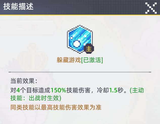 咱就是说,这技能简直是 “速射小狂魔”!1.5 秒就能冷却好,嗖的一下,4 个目标就吃上 150% 技能伤害啦~不管是清小怪还是打乱敌人前排,它就像连珠炮,“哒哒哒” 疯狂输出,节奏直接拿捏,让对手根本没法好好摆阵型,只能被咱压着打!