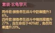 1、套装属性:选择带有格挡率加成的装备套装,如玄龟套装,其部分套装效果可直接提升格挡率。