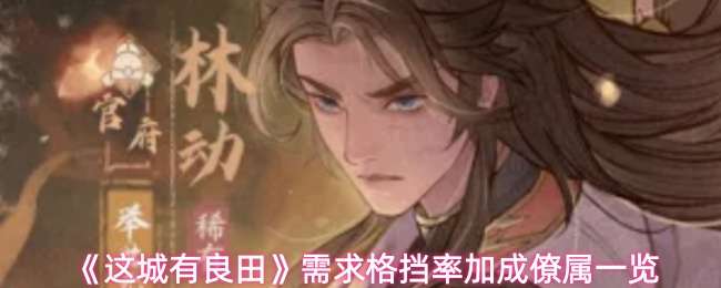 以上就是pk游戏网小编整理带来的这城有良田哪些僚属需要格挡率加成,需求格挡率加成僚属一览,更多相关游戏攻略,请关注pk游戏网!