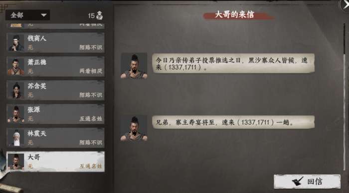 做悬赏任务将门派好感提升到50时收到大哥飞鸽