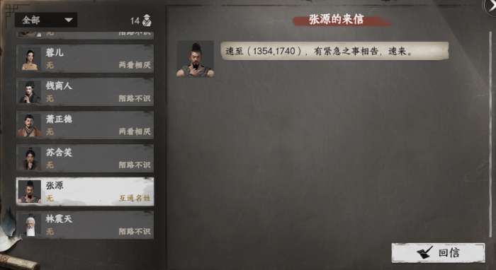 做悬赏任务将门派好感提升到25时收到张源飞鸽