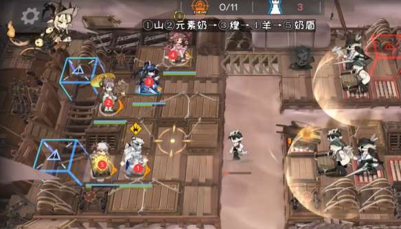 需求干员:煌(地面输出)、山(地面输出)、塞雷娅(重装)、艾雅法拉(高台输出)、蜜莓(元素奶)