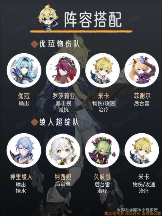 ① 优菈物伤队: 优菈+罗莎莉亚+米卡+菲谢尔