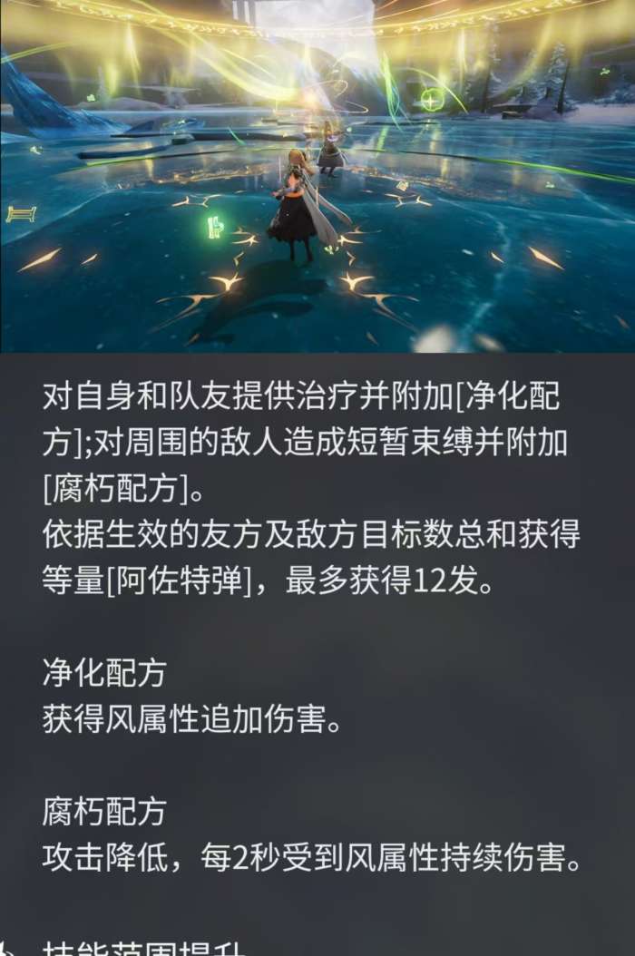 大招也是范围加血,同时给友军叠个风属性buff(友军使用【武器】攻击时生效,远程,近战,甚至同律武器都可以。)