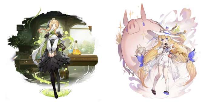 奶妈,骑猪笑嘻嘻的女孩,增伤,回血型辅助,万金油随便搭,性价比最高的奶妈兼增伤辅助,跑图也非常快,就是容易绊脚。前期打打主线就能拿到。