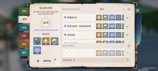 首先因为今天要测历练点,所以说在昨天晚上就已经积攒了5个历练点,这里要给不怎么注意的旅行者们提醒一下,长效历练点=历练点=1个委托(1个历练点奖励)=1:1:1,积攒过程中存在小数点