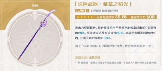 薙刀是目前长枪中最顶尖的武器之一,许多受欢迎的长枪角色依赖于能量充能,并且薙刀很好地满足了这一条件。此外,薙刀的充能转换成攻击技能的机制也进一步提高了薙刀的价值。