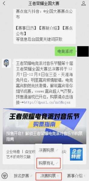 答:打开微信→搜索并关注王者荣耀全国大赛公众号→发消息→决赛购票→购票有礼→活动页面领取奖励