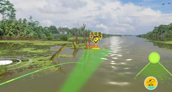 4、路亚的抛竿需要注意,水域上会存在障碍物,抛竿时轨迹是绿色的才是成功抛竿。