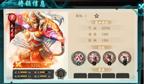 3. 被动技-勇冠江东:攻击+5%,伤害加成+5%。(将领升至 6星解锁技能)