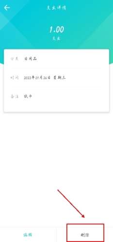 2、进入之后就可以看到【支出详情】,最右下方有【删除】选项,点击它;