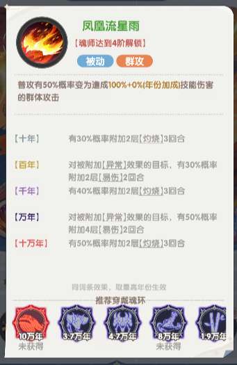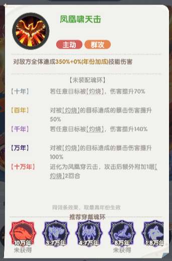 【十万年】进化为凤凰穿云击,攻击后额外附加1层【灼烧】2回合
