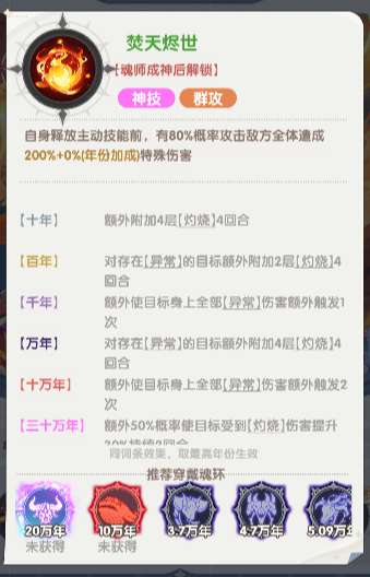 【三十万年】额外50%概率使目标受到【灼烧】伤害提升30%,持续2回合