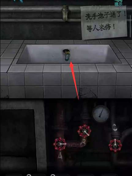 6、将阀门安装在洗手台下面,根据照片线索A转两下,B三下,C不转,获得号码为245的钥匙,使用钥匙打开柜子获得贡品