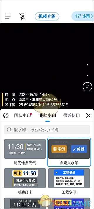 1、打开软件,点击【水印】按钮,找到【工程记录水印】或者【自定义水印】,点击编辑;