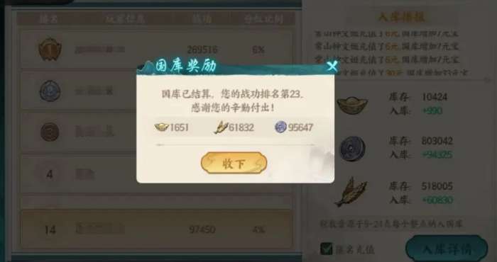 除了上述的方法外,国库分红、好友赠予等方式也能令各位拿到不少的粮食,但要注意国库分红有冷却周期,好友赠予也有次数上限,因此并不能将它们作为粮食获取的主要手段。此外,要是各位急缺粮食,等不及让农庄慢慢产出,也可直接在元宝商铺里用元宝来进行换购。该方法虽然获取粮食的效率较高,但性价比特别的低,所以最好只在自己非常需求且没有其它办法再获取粮食时,才去使用该方法来完成粮食的获取,否则会比较的亏。