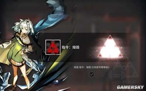凯尔希携带着三技能"指令:熔毁",与二技能变身群卫不同,它可以将Mon3tr变成一个专精于单体攻击的刺客。在使用技能期间,Mon3tr的全身会散发出红色的光芒,攻击和防御属性会急剧增加,变得异常庞大。它的目标非常明确,就是要对敌人造成致命一击。但如果未能成功击杀敌人,Mon3tr就会受到反噬,失去其最大生命值的一半。