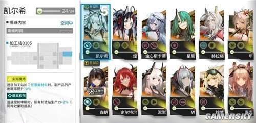 尽管在“任意系材料”中,凯尔希的最高加成高达70%,超过了梅尔的65%,但在实际的加工站中,我们更倾向于选择加成更高的指定材料,而不是任意系的加成。因此,这种加成的实际意义有限。凯尔希的第二基建技能是“最高权限”,即当进驻控制中枢时,所有制造站的生产力会增加2%(如果有其他相同效果的技能,则取效果最高的那个)。这种技能与阿米娅和诗怀雅的技能类似,但作用的地方完全不同。凯尔希的技能能够提高所有制造站的生产力,而阿米娅和诗怀雅的技能则分别提高所有贸易站的订单效率7%。