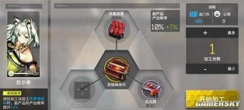 凯尔希的第一项基建技能为“未知技术”,该技能只在加工站中生效。具体效果是当任意材料在加工站中进行加工时,副产品的产出概率会提升70%。虽然技术名称为“未知”,但实际效果并不出众。