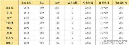 凯尔希是一位六星医疗干员,她的主要特性是恢复友方单位生命,是单体医疗这一常规子职业的代表之一。与其他同职业的干员相比,她更像是一位“召唤系医疗”,能够通过召唤部件来进行治疗。在面板数据的对比中,我们主要比较了与她同一子职业的其他七位干员,包括闪灵、亚叶、图耶、华法琳、赫默、苏苏洛和嘉维尔(不考虑天赋,均按精二满级无潜能计算)。