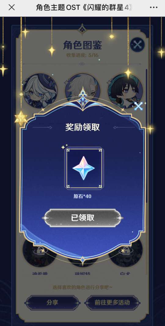 ②收集5个角色语音,即可获得40原石,直接发放到游戏内邮箱。