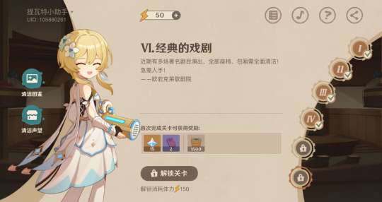 通关清洁委托关卡,可领取奖励85原石;