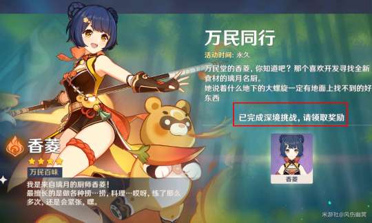 香菱的冒险等级为20,可以前往深境探险并且在3-3层轻松获得奖励。香菱是一个特殊的角色,其它角色可以在她放技能之后顶替上场。该角色是 Cherry Blossom High 的亲生女儿,因此一直是一个强大的后排输出角色,这意味着她永远不会过时。