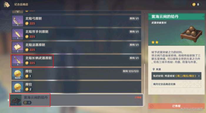 这些物品可以用风之印来兑换,用于角色突破非常有效,建议把它们放在首位。此外,还有一个单手剑的原型,可在挖矿之后锻造多个试作品,然后再进行精炼。