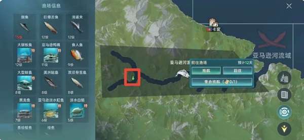 推荐钓位是大开曼门口,同样是安全区,这里有军曹鱼和大虾,可以同时钓取。