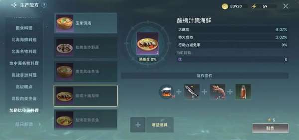 军曹鱼11,9低获取,大虾10,8低获取,这两样是做酸菜鱼的材料+17料理。