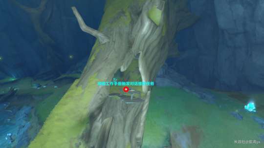 首先来到巨渊主矿区南边传送锚点,在传送锚点附近有一处山洞。进入山洞后往右走便能一根树干,进入树干内阅读桌子上的工作手册便会触发对话,对话结束就会接取任务并解锁成就《请勿长期食用》