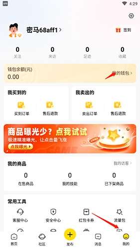 1、打开软件,点击底端的“我的”选项,然后点击“我的钱 包”选项。