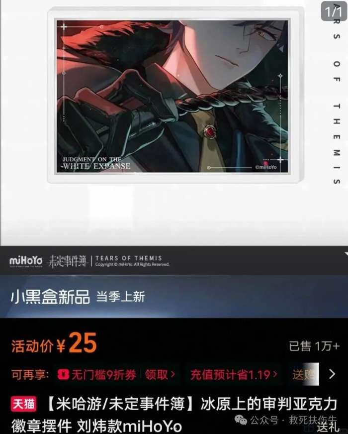 这款“刘炜款冰原上的审判亚克力天猫徽章摆件”还是和《未定事件薄》的其他四个男主一起出的。