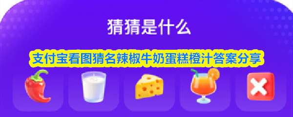 以上就是支付宝看图猜名辣椒牛奶蛋糕橙汁答案是什么,支付宝看图猜名10月7日答案今日,更多相关攻略,请关注pk游戏网更新!