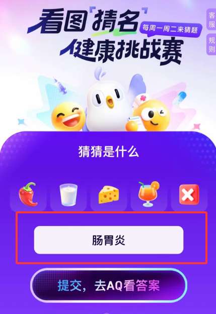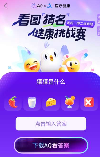 软件提交 专题合集 热门手游支付宝看图猜名辣椒牛奶蛋糕橙汁答案是什么?支付宝最近推出了“AQ看图猜名”有奖活动,用户参与并答对题目即可领取现金红包。那么支付宝看图猜名10月7日题目答案是是什么呢?今日题目还是很难的,给出了五个图案,但是正确答案只有三个字哦!正确答案是【肠胃炎】。