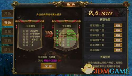 3、当然,随着大家等级的提升,所需等级丹的品质也在提升,由低到高分别为普通、高级、顶级、主宰、霸者。还有种特殊的万能等级丹,是无论等级多少都可以直接升一级的~获得它们,除了去对应的地图打BOSS之外,还有个等级试炼是可以刷到大量经验丹碎片的,然后再使用合成功能就可以轻松得到更高级的经验丹了。
