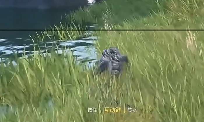 喝水的操作本身不复杂。找到水源,走过去,屏幕上会弹出一个交互提示,按E键就能喝。但有一点要注意,恐龙的头得正对着水面,提示才会出现。有时候站在水边死活没反应,多半是角度没对上,转一下方向试试就好了。体型大的恐龙还有个额外的麻烦,水太浅的地方根本没法喝,得找深一点的河段或者湖边,不然碰撞体积卡住了,交互就出不来。