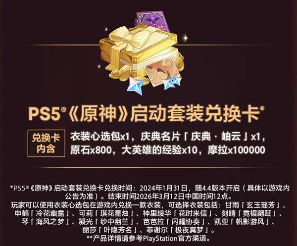 据了解,套装内含PS5轻薄版主机(光驱版)和PS5《原神》启动套装兑换卡。