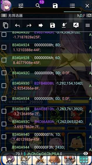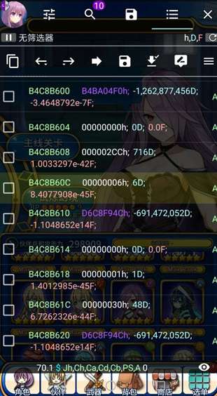 软件提交 专题合集 热门手游使用GG修改器修改卡片游戏时,先将卡片升到1级,在修改器中搜索“1”;升到2级后搜索“2”,重复此过程。升到5或6级仍未找到目标数据时,继续升级并搜索对应等级,逐步缩小范围。然后逐一查看搜索结果,通过卡片等级和角色代码比对,最终找到正确数据进行修改。