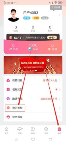1、进入APP后,首先点击右下角“我的”,再下拉页面找到“我的等级”,点击进入;