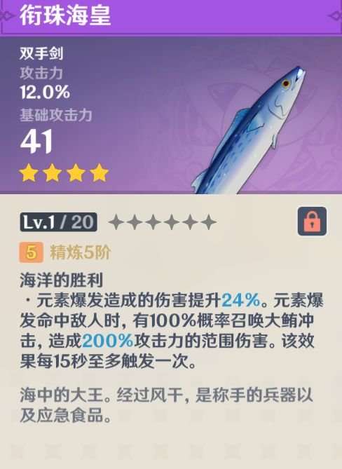 这把咸鱼系列的第一把武器具有很高的观赏价值,但是其强度一般,更适合用来收藏。