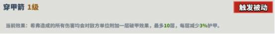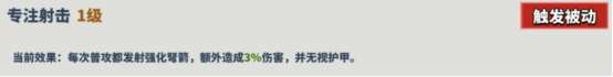 描述:每次普攻都发射强化弩箭,额外造成3%伤害,并无视护甲。