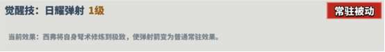 描述:希弗将自身驽术修炼到极致,使弹射箭变为普通常驻效果。