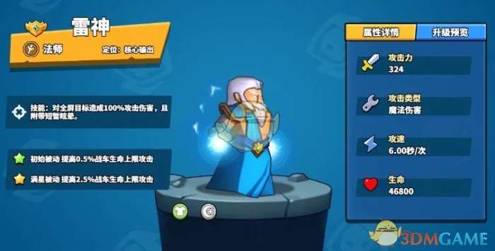 上榜理由:全屏伤害英雄,不仅可以给对面战车和小怪造成伤害和眩晕,而且自己血量越高给敌人造成伤害越高,后期可以直接给对面战车造成伤害