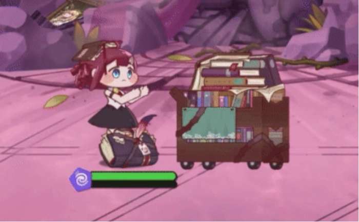 巴丽叶的技能很有意思。她的使徒技能“请整理好书籍”,使用时会推着图书推车,给攻击力最高的友军加上护盾,这个护盾能扛住最大生命值 26%的伤害,持续3秒,推完车后她还会返回,并且恢复60点 SP。