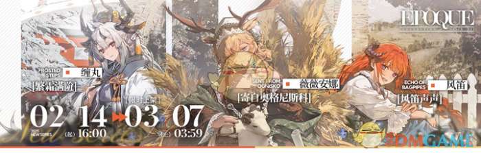 《明日方舟》还推出了新的时装系列。从2月14日起,三款精美的【时代】系列时装——薇薇安娜的“寄自奥格尼斯科”、风笛的“风笛声声”,以及缠丸的“繁霜满阶”将在时装商店上架并限时销售。