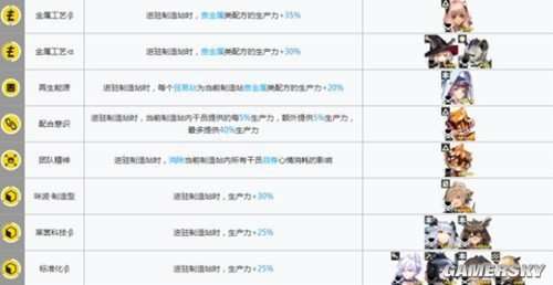 我们来看到可以加速金条的干员(25%以下暂不考虑)