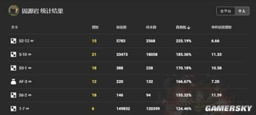 (图为企鹅物流上固源岩掉率的统计结果)
