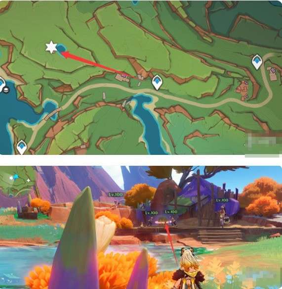 2、2号宝箱:「安饶之陆的哨卫」,击败2波丘丘人解锁。