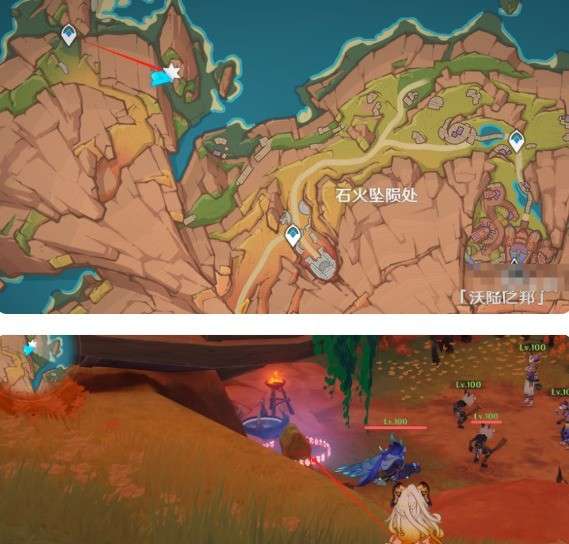4、4号宝箱:「健壮如龙者」,使用突角龙或使用「沃陆之邦」部族成员撞击附近3个地热喷口解锁。